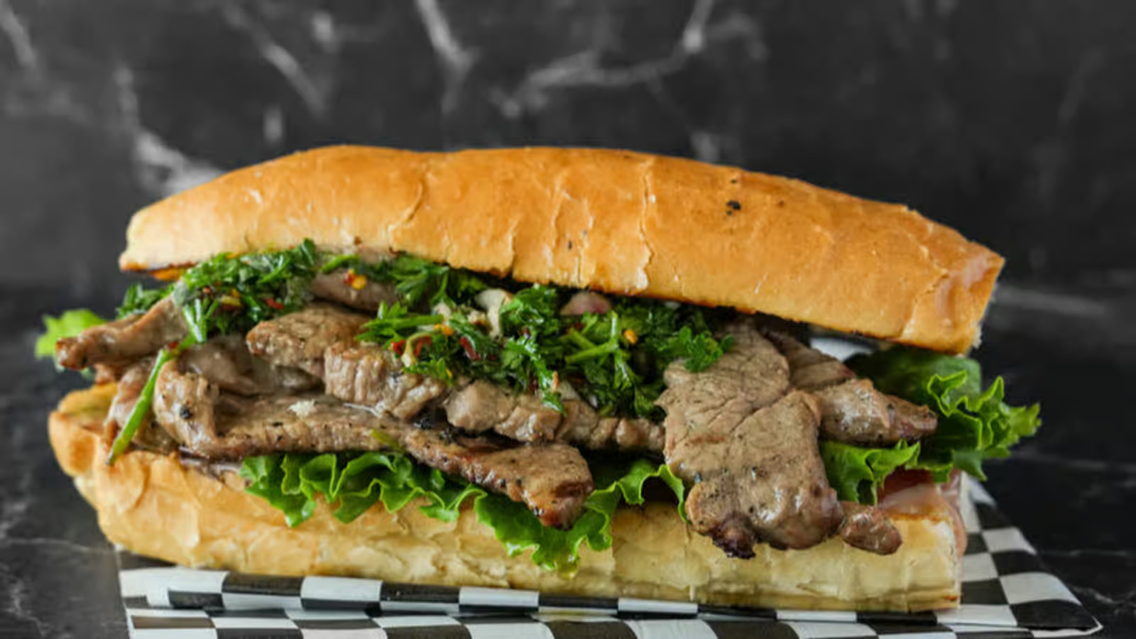 The holy grail of steak sandwiches! Juicy steak slices marinated with zingy chimichurri sauce, nestled in a fresh french roll with mayo, chimichurri sauce, Crisp Lettuce, and Tomato.